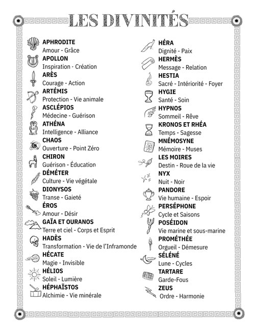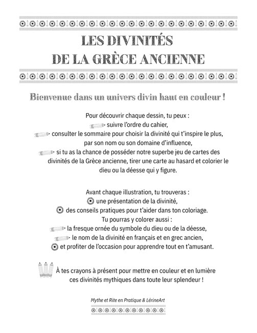 Retrouvez les 32 divinités du Jeu de cartes dans le Cahier de coloriage